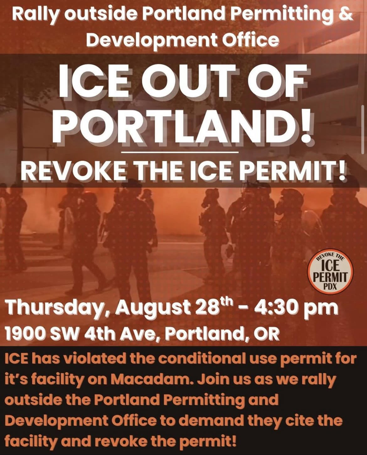 Join us to protest ICE's violation of the conditional use permit. We are rallying to demand the Portland Permitting and Development Office revokes the permit.